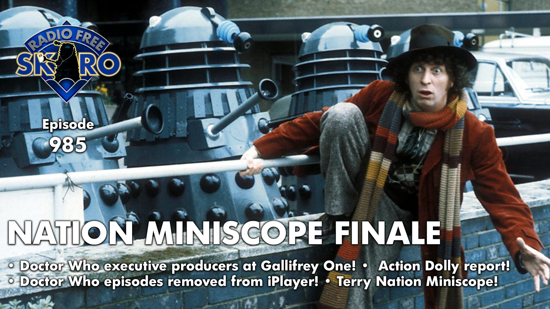 It’s a Current Producer-Palooza at Gallifrey One this coming February with Julie Gardner, Phil Collinson, and Joel Collins announced as guests for Gallifrey One, and that’s not all on the news list including a “world exclusive preview” of “Joy to the World” coming to Children In Need on November 15, some Robert Banks Stewart iPlayer controversy, Sylveste(r) McCoy missing episodes discovered, an action dolly report and more, including the concluding Terry Nation Miniscope segment, covering “Genesis of the Daleks”, “The Android Invasion”, and “Destiny of the Daleks”! Do you have the right to listen? You do!