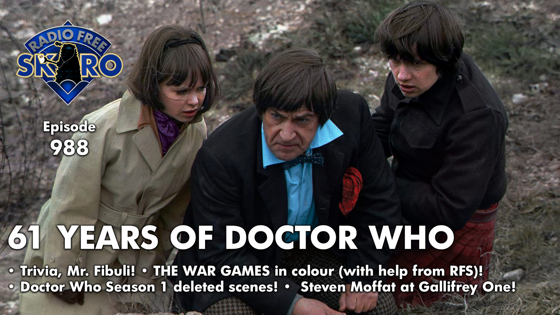 Happy Doctor Who Day Weekend! And we celebrate with a bumper length episode! “The War Games” in Colour, coming December 23! (With a tiny bit of help from us…) Steven Moffat returning to Gallifrey One! Plus, a surfeit of Doctor Who tat to celebrate the show’s 61st anniversary, new and exciting action dollies, Jo Martin’s Big Finish debut, and the return of the increasingly irritating (for Warren) Trivia, Mr. Fibuli, with guest contestants Erika and Kat!