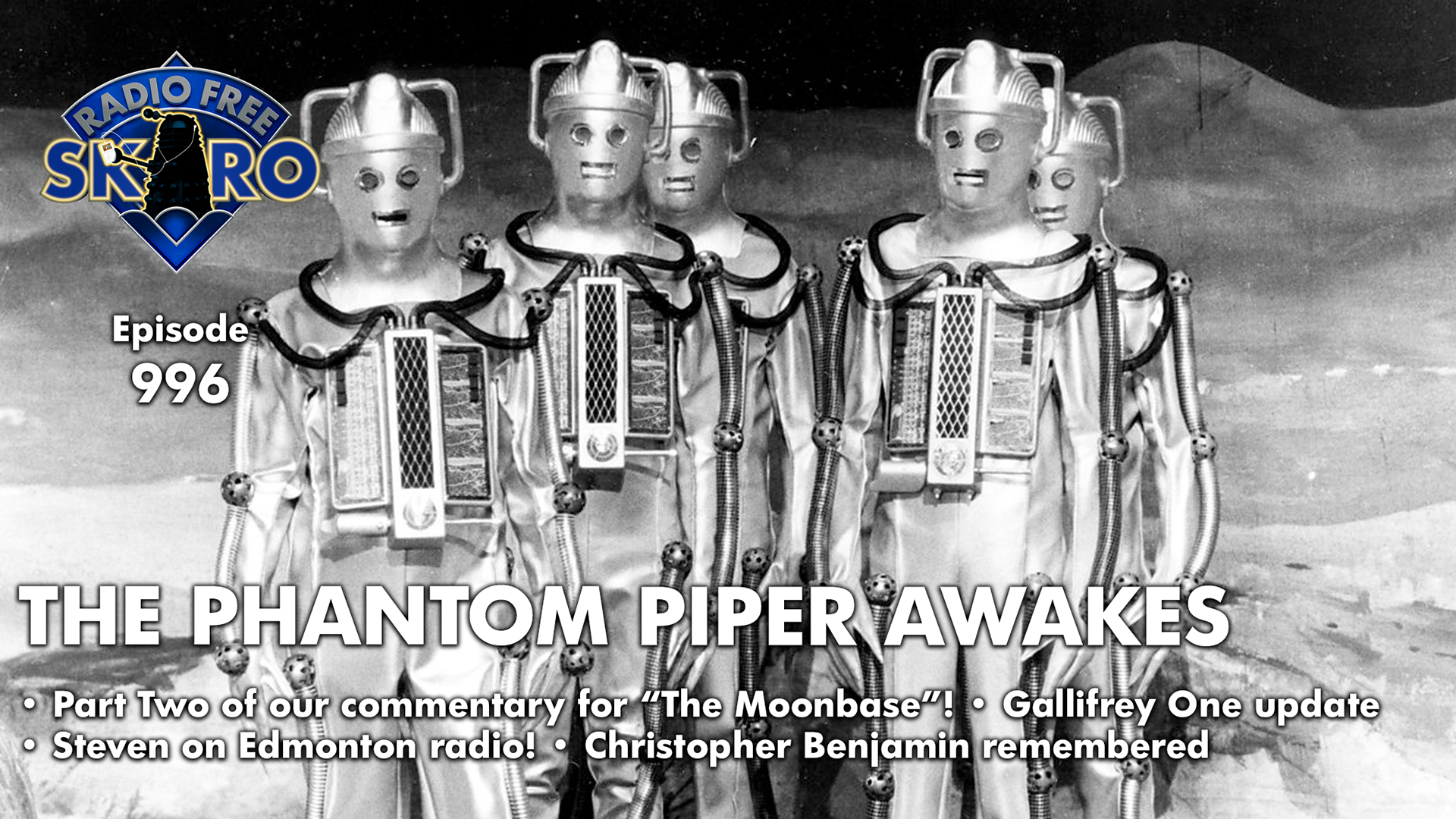 The Swarm (but not the COVID kind) has befallen a husky-voiced Steven this week and yet in spite of that (or because of it?) he made an appearance on Edmonton radio, one 880 CHED, and explained to local norms both the exciting world of Doctor Who and the mysterious practice of Radio Free Skaro-ing, which you can listen to on this very episode! Plus we have even more Gallifrey One news, an interesting and free TARDIS diary for UK folk, and Episode Two of our exciting and very focused Classic Series Commentary on “The Moonbase”!
